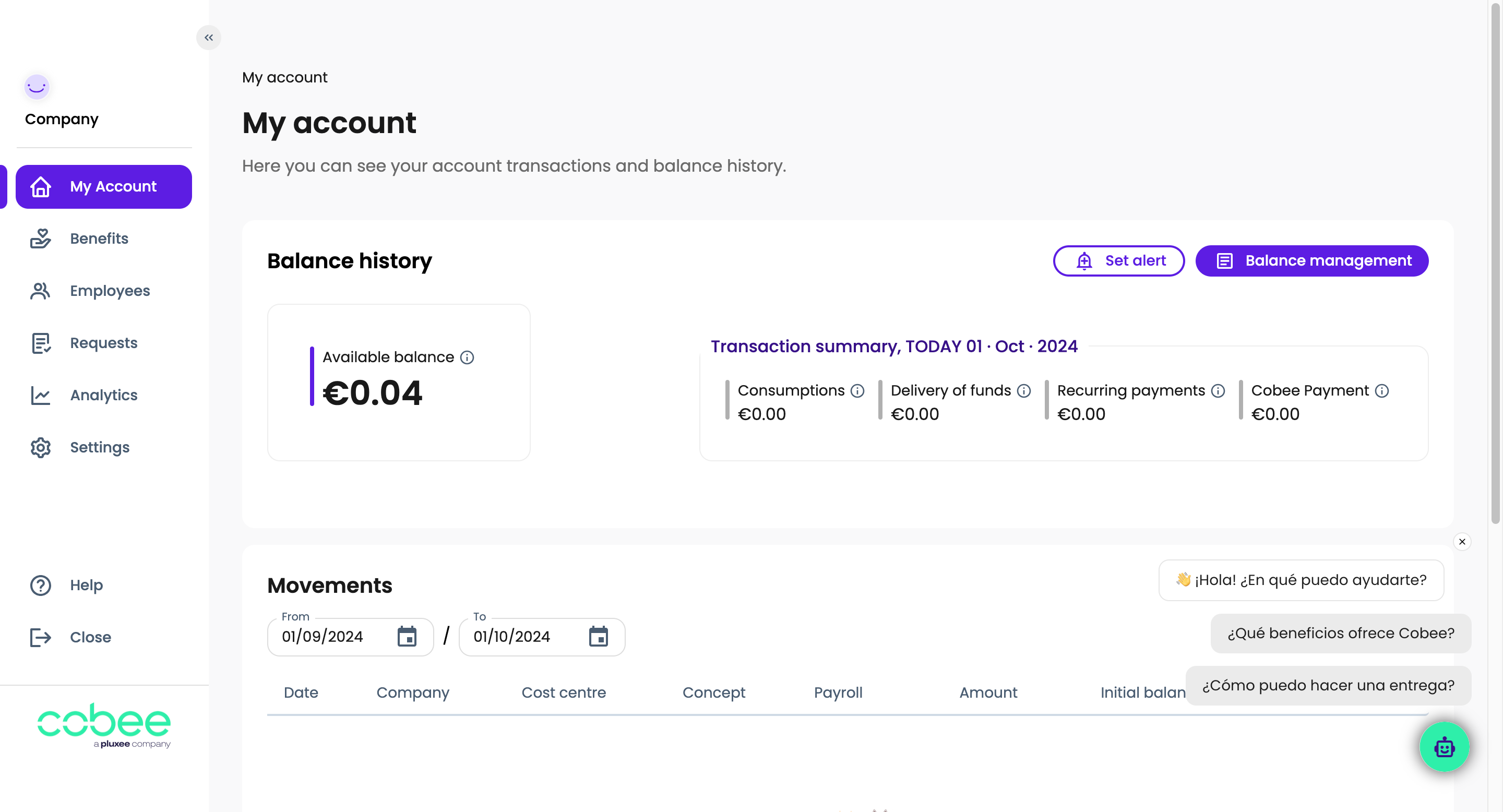 At Cobee, we offer a low balance alert feature that allows company administrators to receive a notification when they are running low on funds. This feature lets you set a fixed amount based on your employees' usual spending, helping you know when your funds are running low and receive an alert.