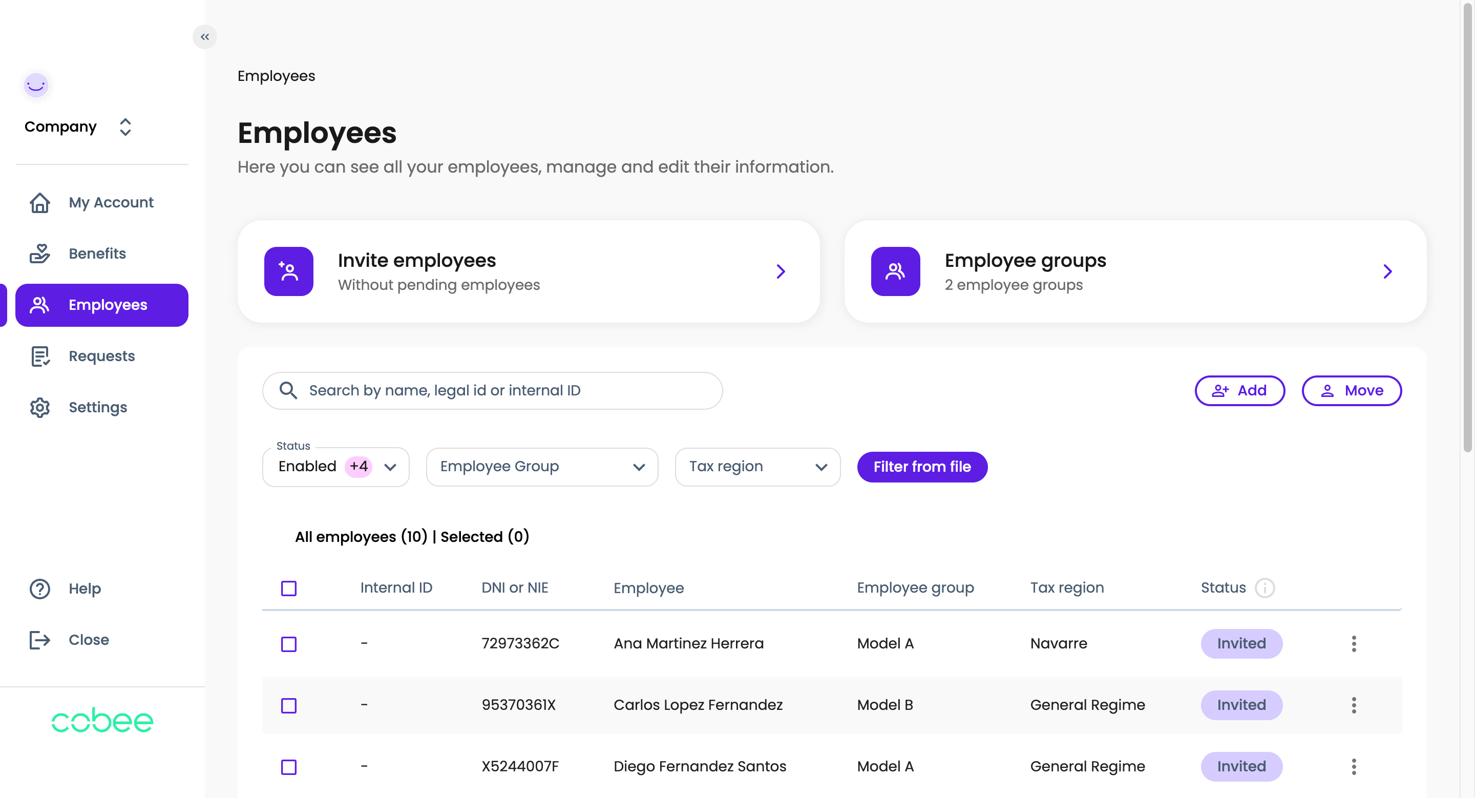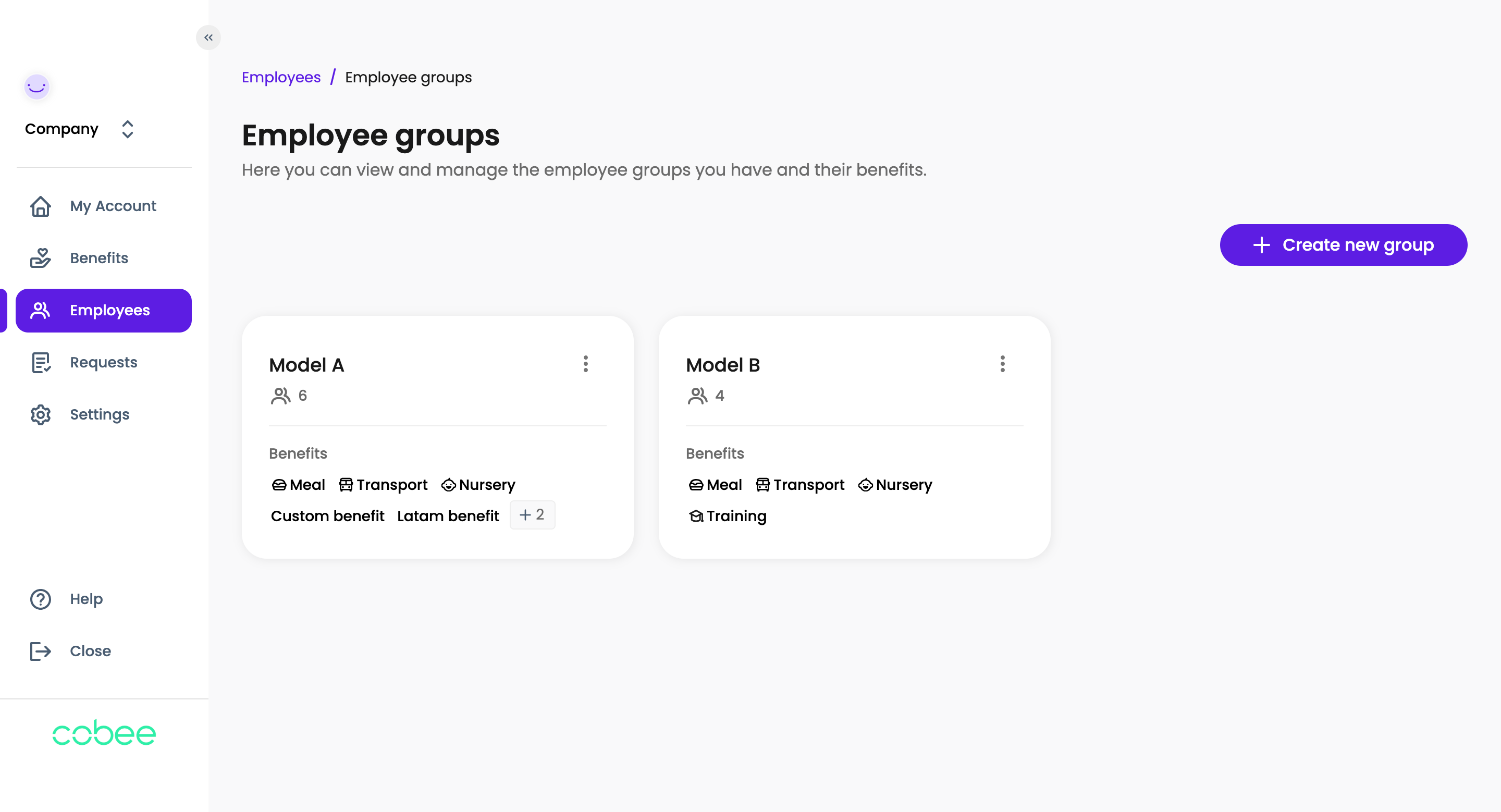 From this section, you will have visibility into all your employee groups and the benefits associated with them.