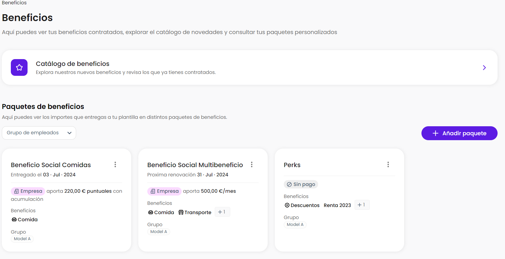 Por otro lado, desde el apartado de beneficios, encontrarás los paquetes de beneficios. ¡Ahora las entregas se llaman paquetes! Hemos modificado el flujo de entregas para poder realizar las entregas de manera más sencilla y eficaz.