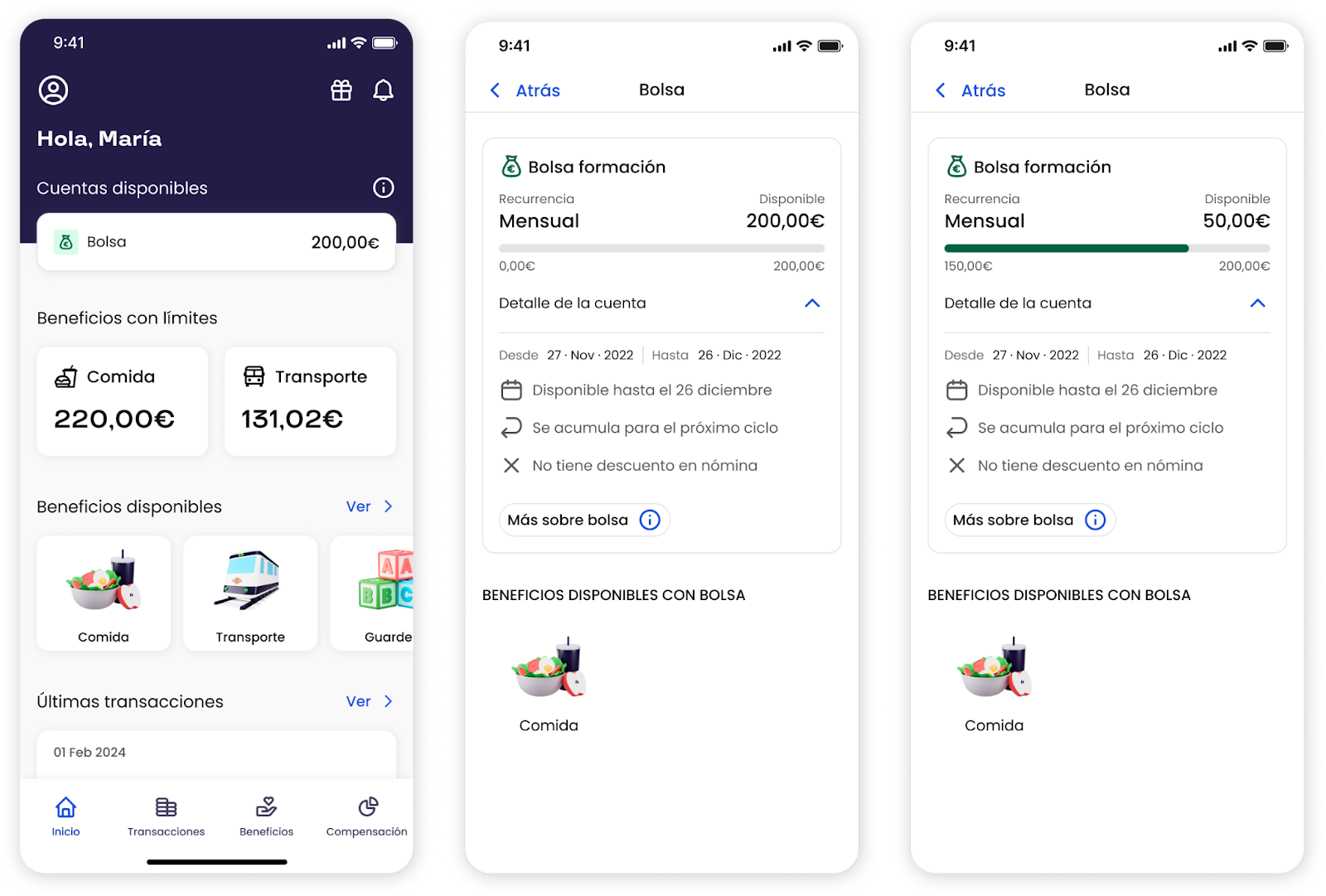 Una bolsa de beneficios es un espacio monedero donde se pone a disposición del empleado un importe para consumir en ciertos beneficios (como comida, transporte, etc.) sin transferencia desde la cuenta de la empresa.